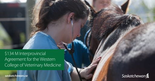 The British Columbia, Saskatchewan and Manitoba governments’ agreement with the University of Saskatchewan provides more than $134 million to the WCVM for the next five years.
