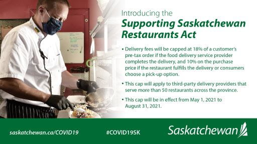 Today, the Government of Saskatchewan introduced The Supporting Saskatchewan Restaurants Act, which extends the cap on fees on food delivery charges, offering a longer period of support to restaurants who have had to shift much of their business to online delivery and pickup orders during the global COVID-19 pandemic.