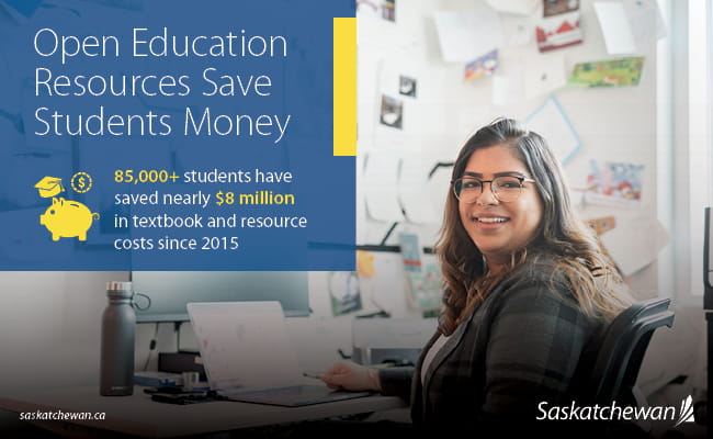Since 2015, the Government of Saskatchewan has invested $1.75 million to support the development of open education resources, resulting in nearly $8 million in textbook and resource cost-savings.
