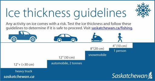 The Water Security Agency urges extreme caution when on or crossing ice as there is a high risk of thin ice. Individuals should ensure that ice is safe for any wintertime activities that may be planned.