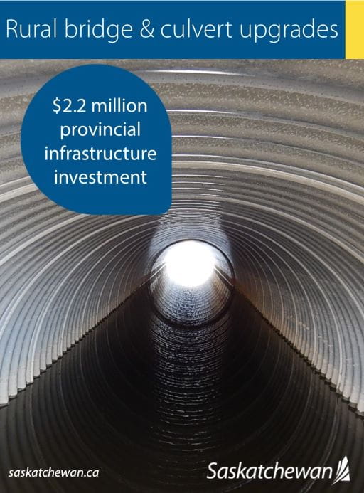 "The Government of Saskatchewan's $2.2 million investment toward these transportation projects will support a more robust rural road network," McMorris said. “Once completed, these bridges and culverts will allow for the efficient movement of goods, services and agricultural products in rural Saskatchewan, which will protect local economies recovering from the pandemic.”