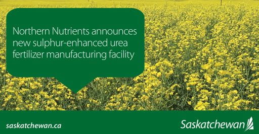 Today, the Government of Saskatchewan welcomed the new investment by Northern Nutrients to build a sulphur-enhanced urea fertilizer manufacturing facility near Saskatoon.