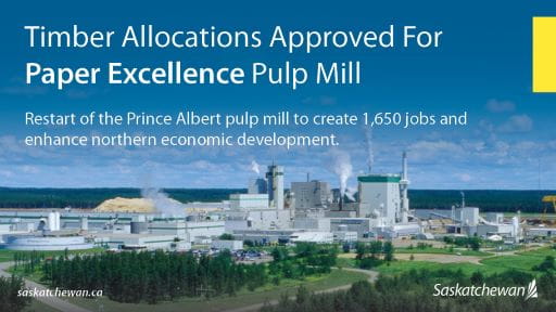 Today, the Government of Saskatchewan announced the approval of timber allocations to support the restart of the Paper Excellence pulp mill in Prince Albert.