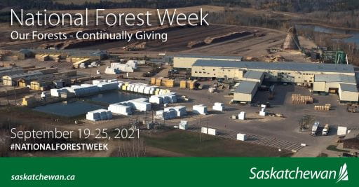 The Government of Saskatchewan has proclaimed September 19 to 25 National Forest Week, with the theme, 'Our Forests' Continually Giving.' The week will highlight the important role that provincial forests play, both in terms of the economy and environmental sustainability.