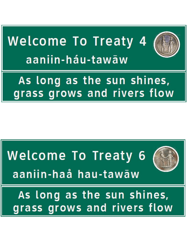 The Government of Saskatchewan and Office of the Treaty Commissioner are coordinating official Treaty boundary signage in the province. The first signs marking the boundary between Treaty 4 and Treaty 6 Territory will be located along Highway 11 between Regina and Saskatoon in the Bladworth/Davidson area.
