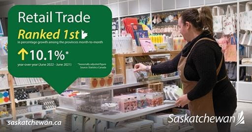 "Economic growth is key to building a strong Saskatchewan and these retail trade numbers are yet another sign that we are moving full steam ahead," Trade and Export Development Minister Jeremy Harrison said. "We will continue to engage with our business community to ensure Saskatchewan is the best place to work and do business in Canada."