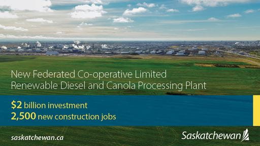 FCL To Build Canola Processing Plant And Canada's Largest Renewable Diesel Facility In Regina
