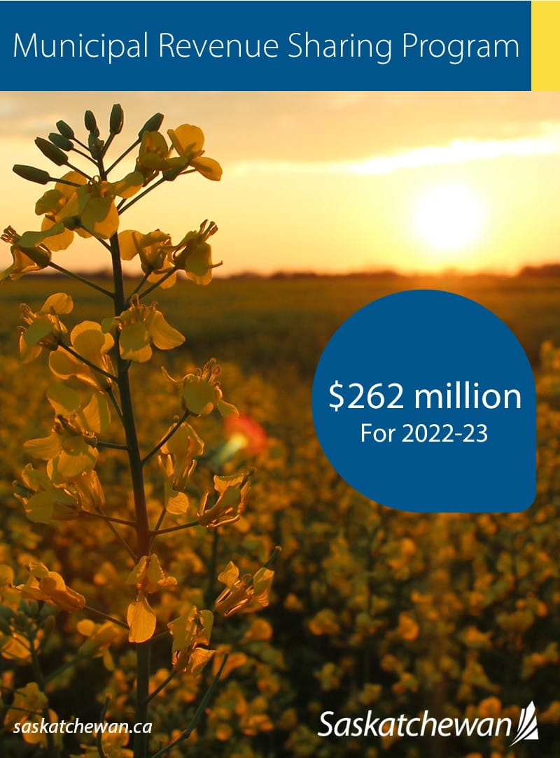 Today, Premier Scott Moe announced that more than $262 million of provincial funding will be invested for the overall Municipal Revenue Sharing (MRS) Program in 2022-23 to benefit Saskatchewan municipalities and support their priorities.