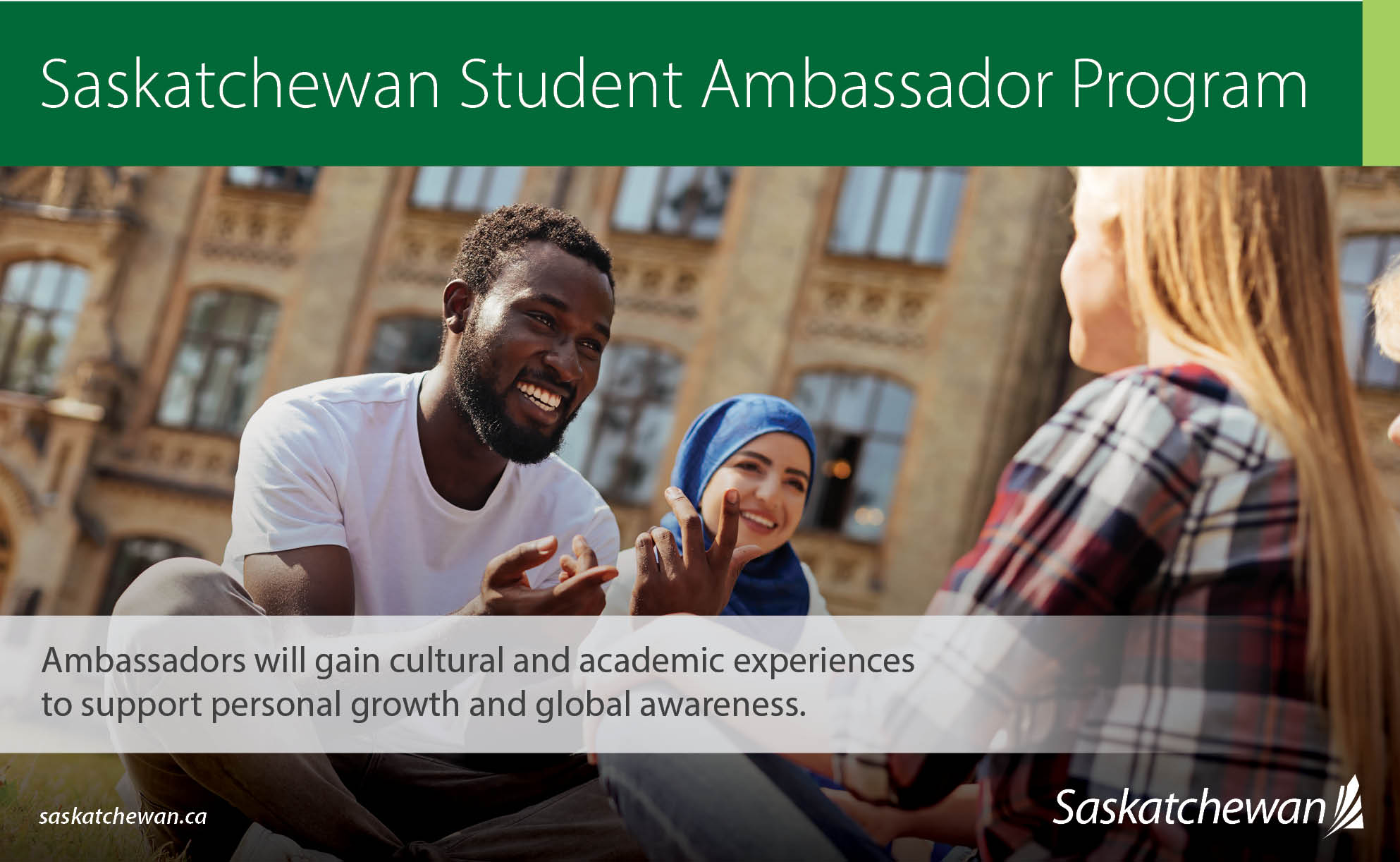 For more information on the program, please visit https://www.saskatchewan.ca/residents/education-and-learning/international-education-strategy/saskatchewan-student-ambassador-program.