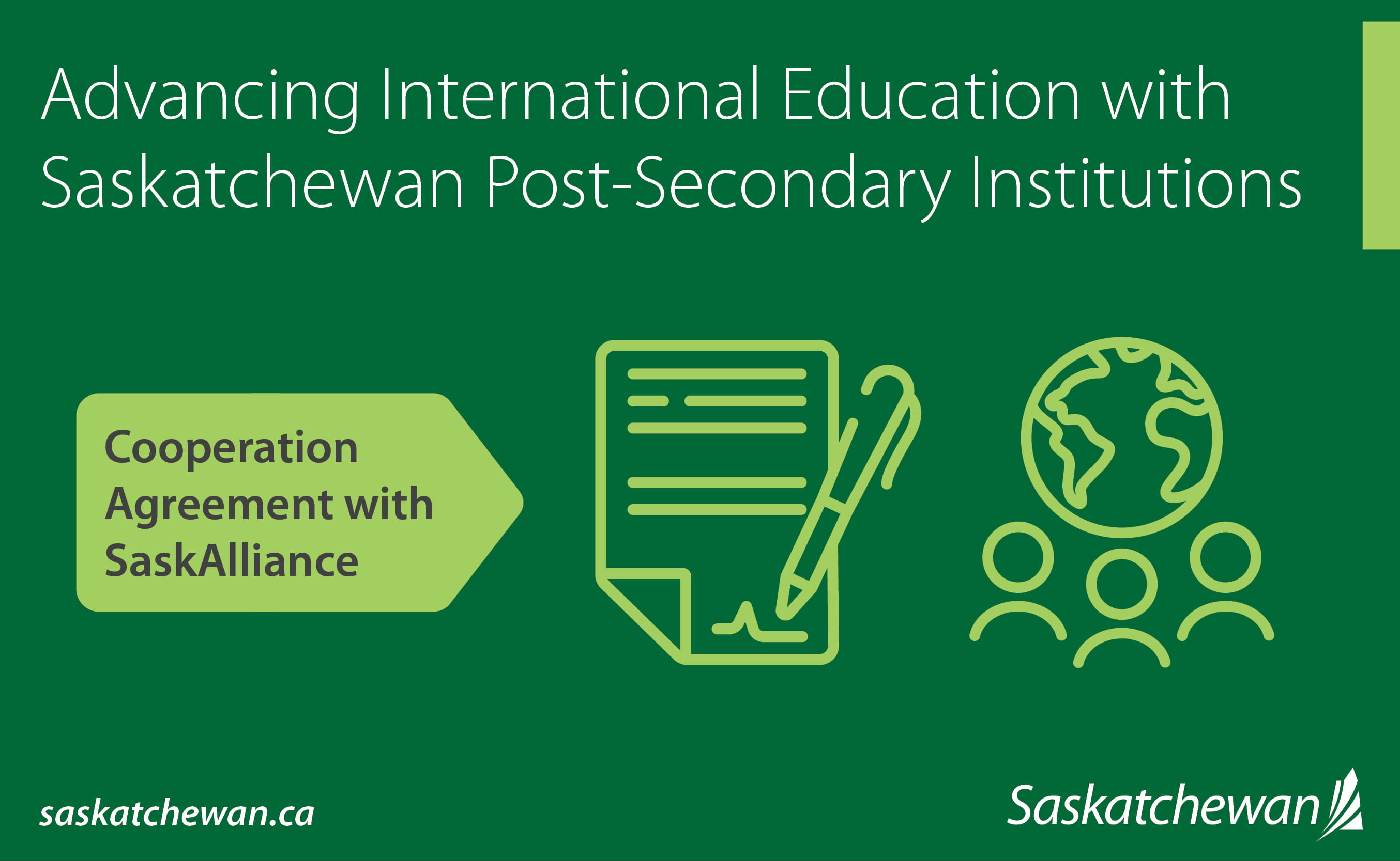 The SaskAlliance will work collaboratively to advance international priorities in the province's new International Education Strategy and meet the commitments outlined in Saskatchewan's Growth Plan to position the province as a destination of choice for research, education, innovation, sustainability, immigration and trade.
