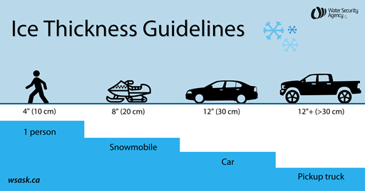 With the arrival of snow and colder temperatures, the Water Security Agency is reminding the public to ensure that ice is thick enough to safely walk, drive or snowmobile on.