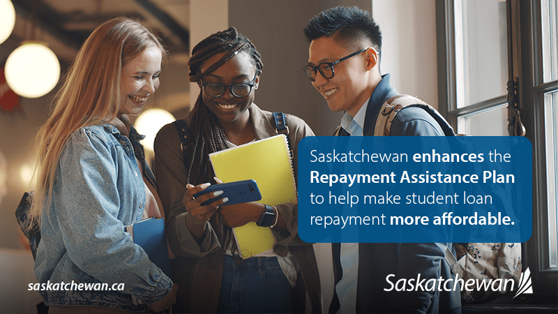 The Government of Saskatchewan is helping address the rising cost of living for student borrowers by enhancing the Repayment Assistance Plan. On November 1, the Saskatchewan Student Aid Program and Canada Student Financial Assistance Program are introducing enhancements that will improve affordability of student loan repayment and streamline repayment processes.