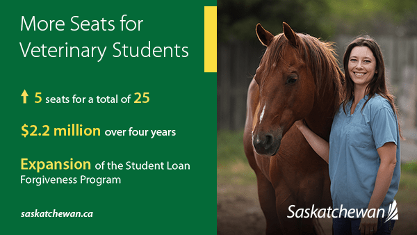 For more information about the Saskatchewan Loan Forgiveness for Veterinarians and Veterinary Technologists program, visit https://www.saskatchewan.ca/residents/education-and-learning/student-loans/loan-forgiveness-for-veterinarians-and-veterinary-technologists.