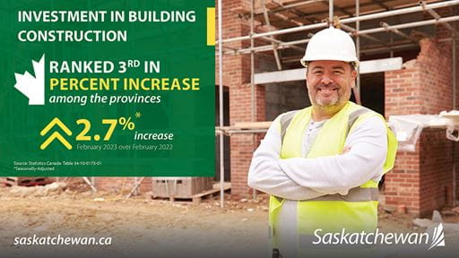 According to the latest numbers released by Statistics Canada, Saskatchewan continues to show strong year-over-year growth in investment in building construction, with the third highest percentage increase among the provinces for February 2023.
