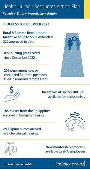 Progress continues on multiple initiatives of Saskatchewan's HHR Action Plan to recruit, train, incentivize and retain more health-care workers.