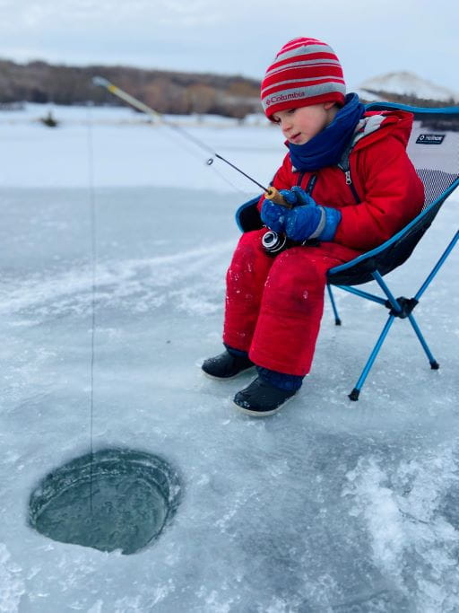Safety is key to an enjoyable ice fishing experience. Tell someone where you will be and when you can be expected back. Dress for the weather, as frostbite and hypothermia can happen quickly. Be aware of ice thickness, as water does not freeze uniformly and can be unpredictable - you need at least 10 cm of good ice to walk safely and at least 30 cm of good ice to travel in a light vehicle.