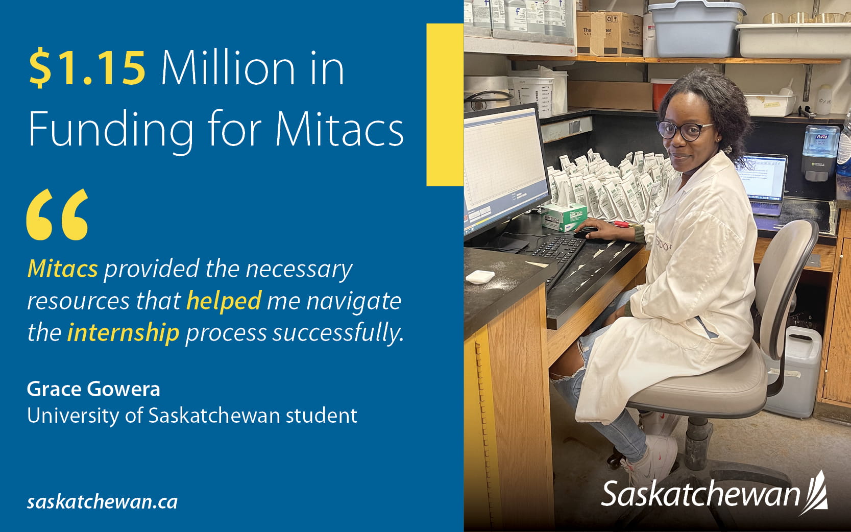 Saskatchewan post-secondary students are jumpstarting their careers by participating in Mitacs programs. In 2023-24, the Government of Saskatchewan is providing $1.15 million to Mitacs as part of its continued commitment to research and innovation research internships in the province.