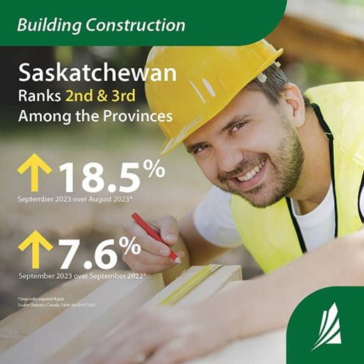 New numbers released by Statistics Canada show continued growth for Saskatchewan's investment in building construction for September 2023.