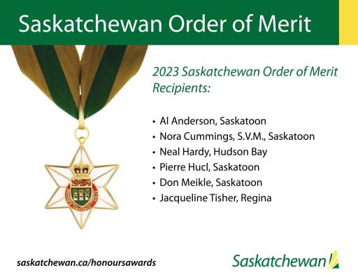 Tonight, six outstanding individuals will be invested with the province's highest honour, the Saskatchewan Order of Merit. Lieutenant Governor Russ Mirasty will invest the 2023 recipients at a formal ceremony in Saskatoon.