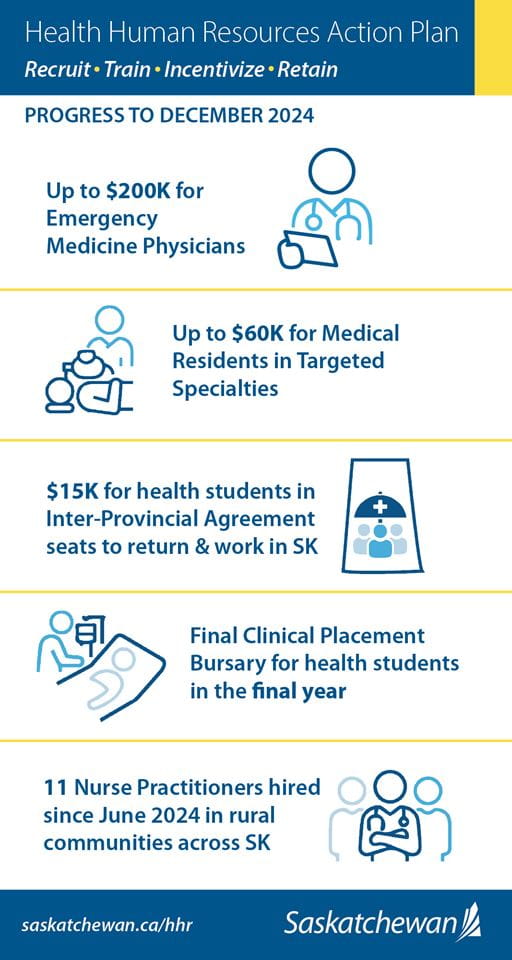Details on health care opportunities, how to access them and more information on the province's HHR Action Plan are available at saskatchewan.ca/HHR.