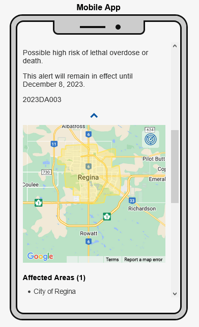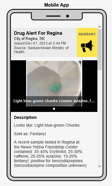 Drug alerts will be issued by the Ministry of Health based on information provided from partner organizations such as the Saskatchewan Coroners Service, Regina and Saskatoon Fire Services, and drug checking sites in Saskatoon and Regina.