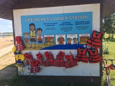 Lifejacket Loaner Stations allow visitors to freely borrow lifejackets in a range of sizes, from infant to adult. This program was designed to ensure everyone can enjoy the water safely.