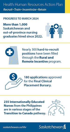 The Government of Saskatchewan continues to make significant progress on the goals and initiatives in Saskatchewan's Health Human Resources (HHR) Action Plan.