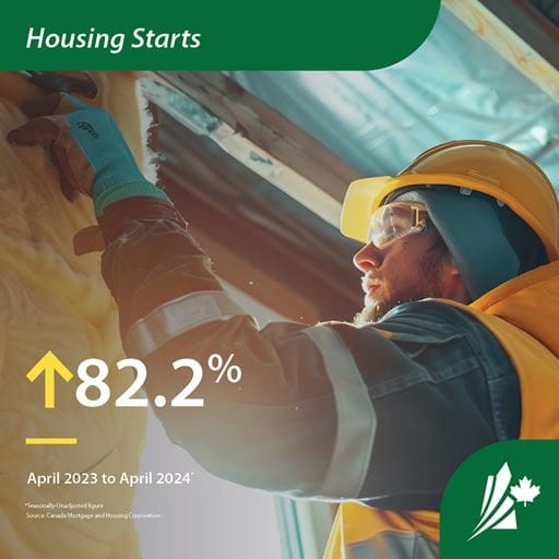 In April 2024, housing starts on multiple units also increased by 184.9 per cent (from 93 units to 265 units), compared to April 2023.