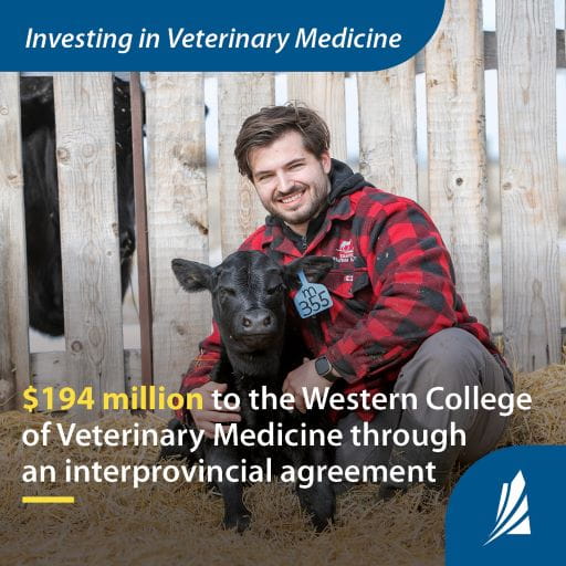 The renewed agreement provides more than $194 million to the WCVM over the next five years, helping ensure the college can deliver critical veterinary medicine programming, research and clinical services that address the needs of each province.