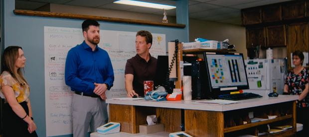Dr. Harrison discussing with the primary care team at the daily huddle