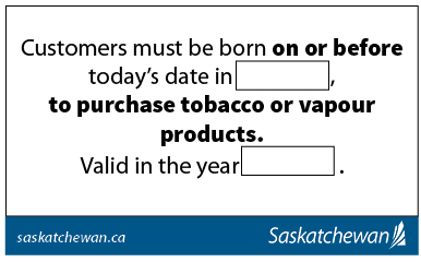 Effective February 1, 2024, the legal age to purchase tobacco and vapour products in Saskatchewan increased from 18 to 19.