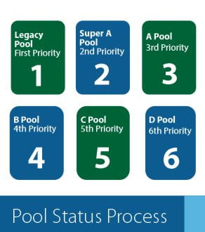 You are not required to apply to progress through D, C, and B pools – you will automatically advance. Once you are in A pool you must submit an application to advance to Super A pool and apply each year thereafter to retain your Super A pool status. If you miss applying, you will go back to A pool and remain there until you apply again.